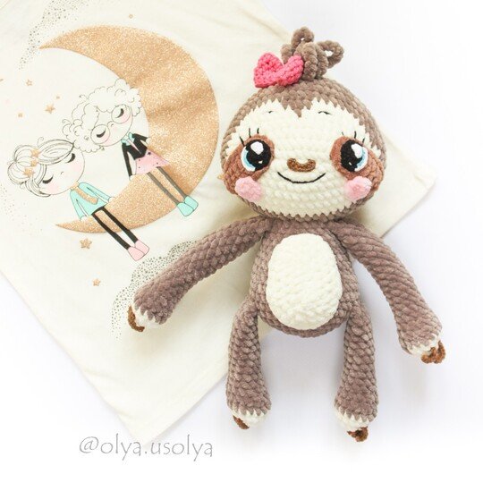 Mit diesem Häkelmuster können Sie ein Faultier Baby nach dem Originalmuster von Olya Usolya aus Plüschgarn häkeln.