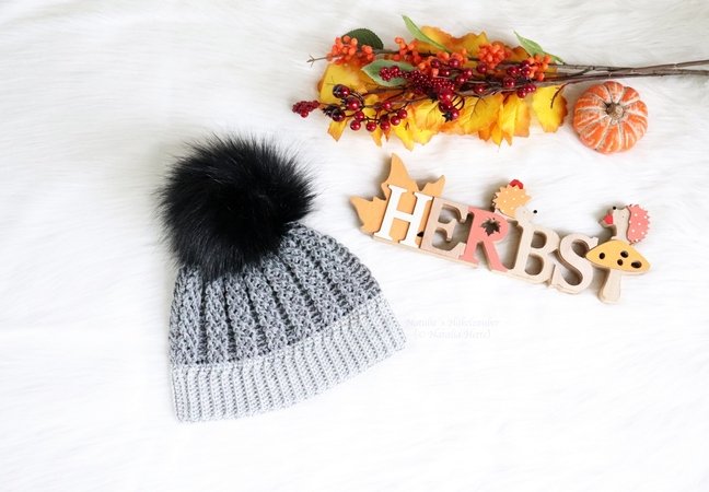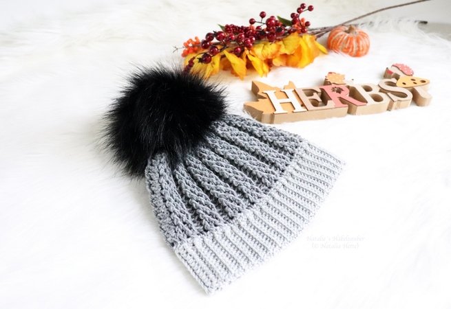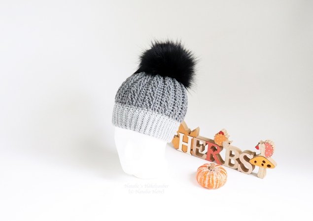 Es wird erklärt: Material, Erklärung für alle Größen, Bündchen, Mitte, Spitze der Mütze, Reliefmuster, Bommel, 14 Seiten, über 30 Fotos, Beschreibung, 2 x Häkelschriften. Für die Anleitung habe ich unter anderem zwei Videos gemacht (Häkeln des Bündchenmüsters und Häkeln des Grundmusters. Die Links finden Sie in der Anleitung.
