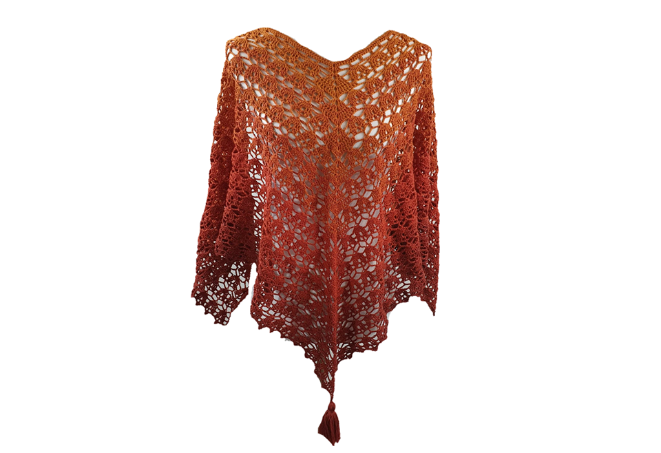 Für das Tuch wurde Bobbel "Wüstensonne" von MT.Bobbelwelt verwendet. 1000LL 3Fädig und mit
