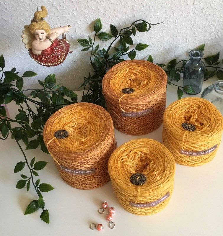 1 Faden „bernstein“ und 3 Fäden „kurkuma“ 4-fädig - 100 g, 380 m (50g/190 m)
