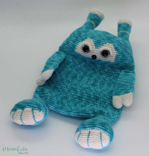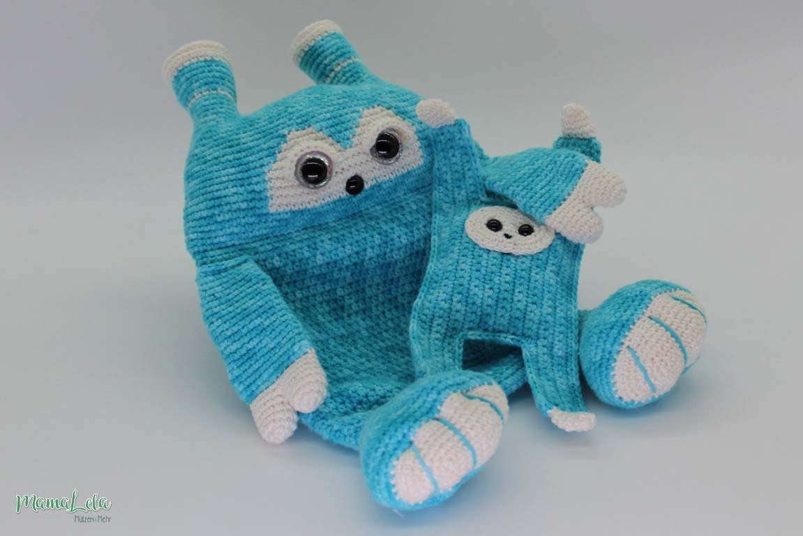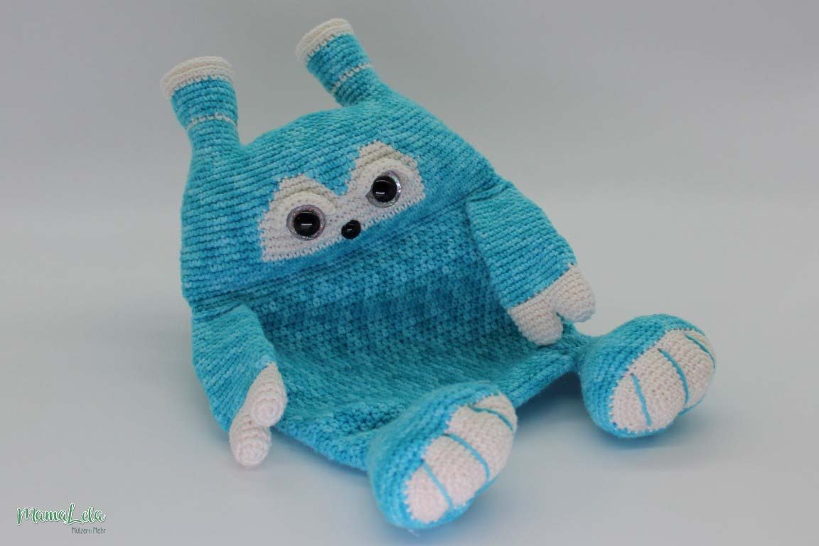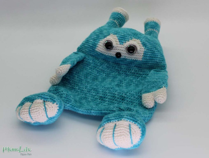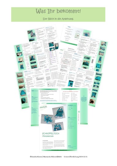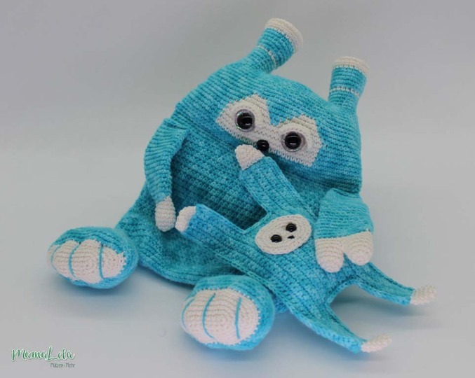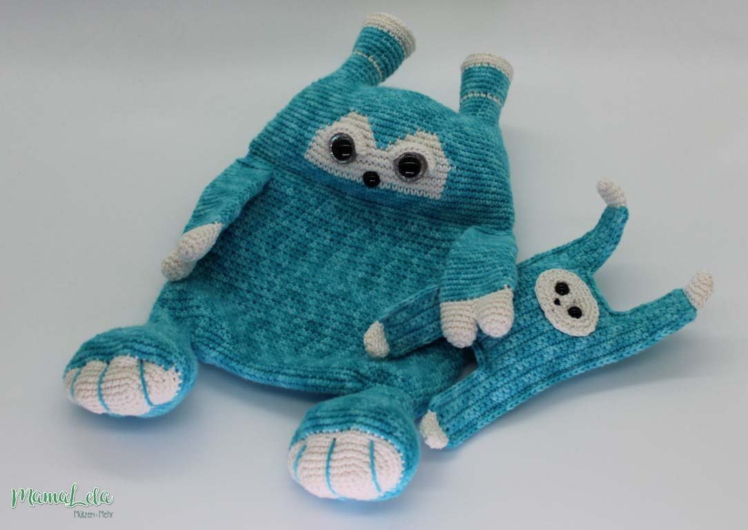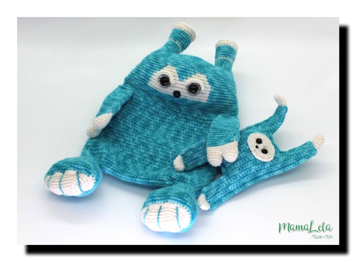 Mit den angegebenen Materialien wird das Schnuffeltuch ca. 35 cm und das Minimonsterchen ca. 15 cm groß