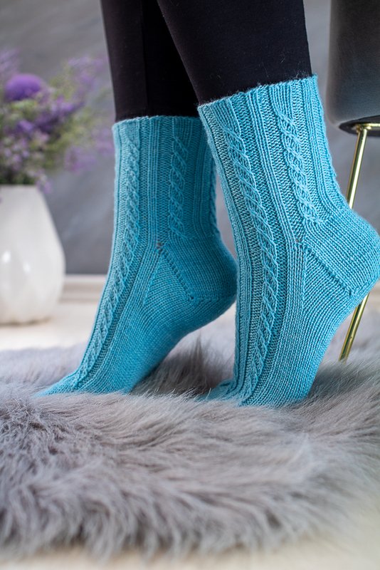 Die Twisted Left Socks Strickanleitung zeigt auf 13 PDF Seiten ausführlichen, wie einfach und ohne große Aufwand eine gut sitzende Socke mit effektvollem aber einfachen Twist, ganz ohne Hilfsnadel gestrickt wird. Das Muster strickt sich schon nach wenigen Runden völlig intuitiv und fast von alleine.