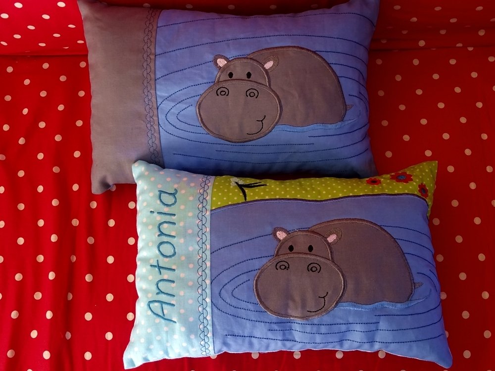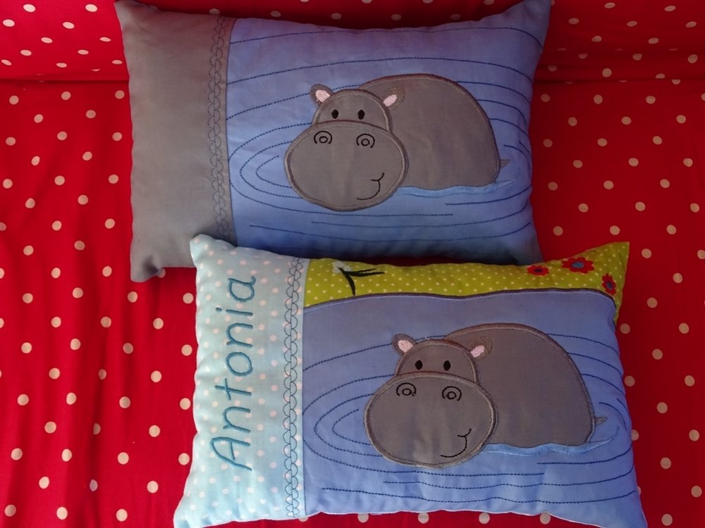 ♥ Stickdatei Nilpferd mit Kissen ITH ♥