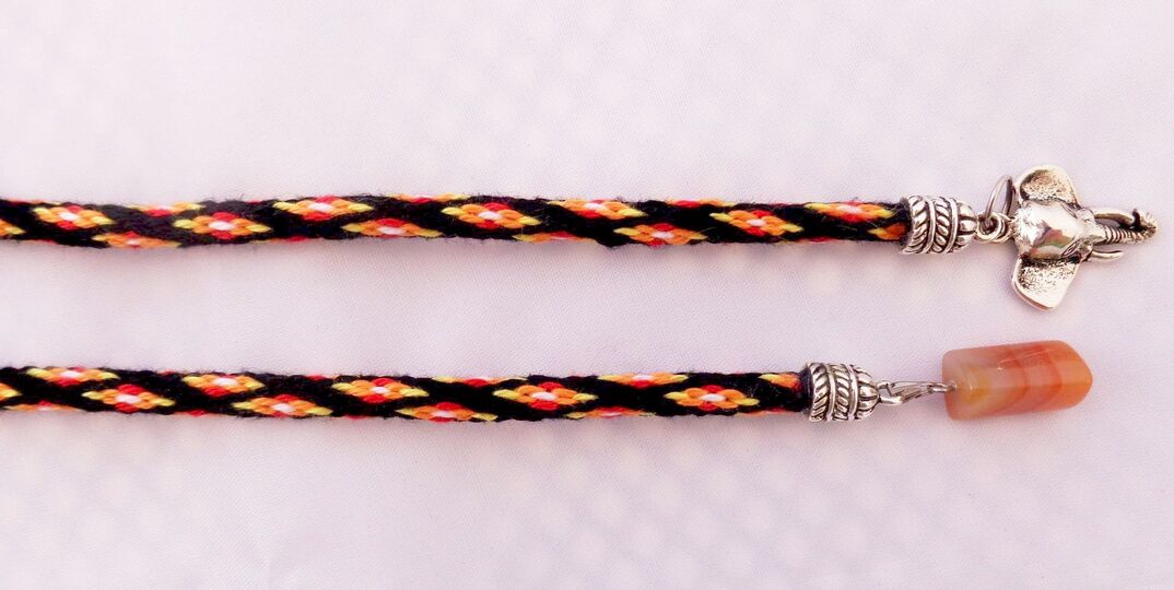2 Charms (hier: 1 Elefantenkopf und 1 orangefarbener Karneol-Achat)