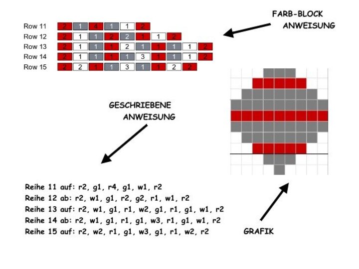 -farbige Zahlen-Blöcke für jede Zeile für C2C-Technik