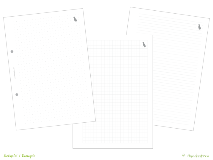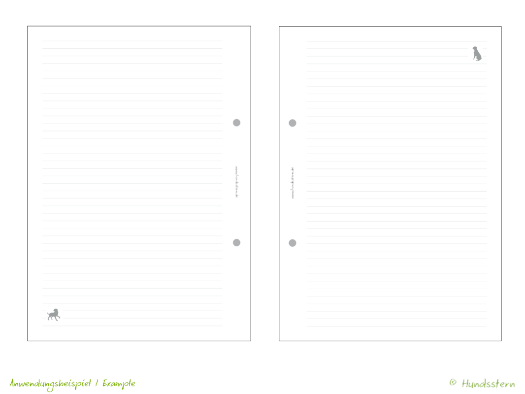 • Die Seiten sind bereits für beidseitigen Druck angelegt (10 Druckseiten = 5 Blatt = 20 Notizseiten pro Lineatur sind enthalten),