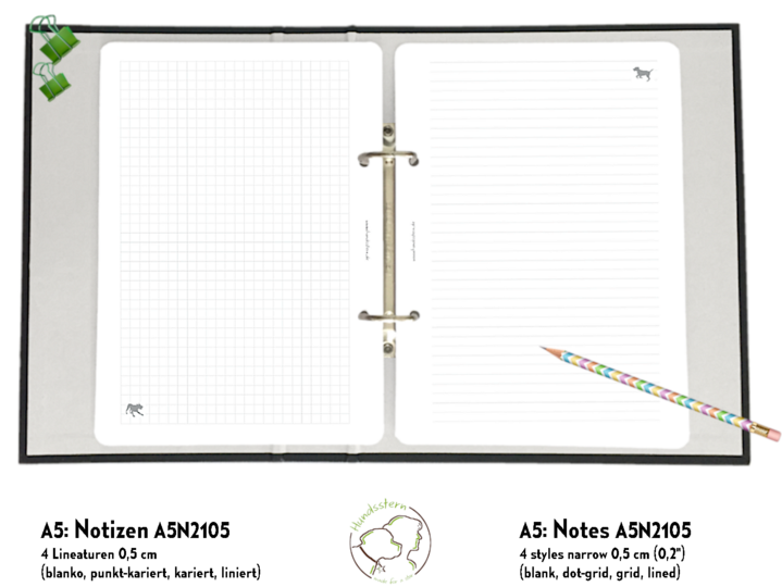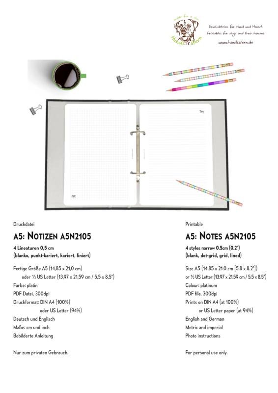 Druckdatei für Notiz-Seiten, Einlagen für Ringplaner im Format A5