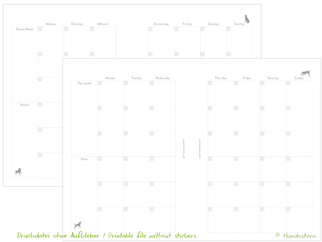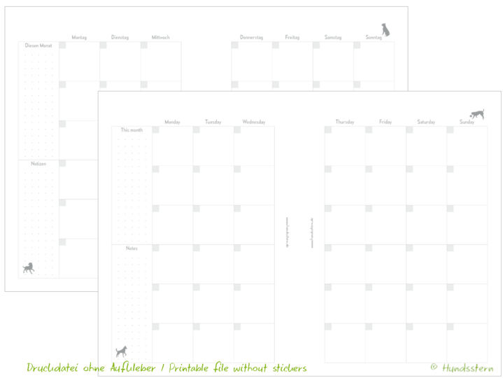 Für Hundefans: Mit diesem Monats-Kalender behalten Sie den Überblick über Ihre eigenen oder die Termine Ihres Hundes.