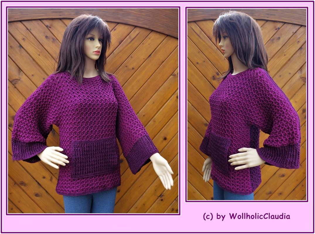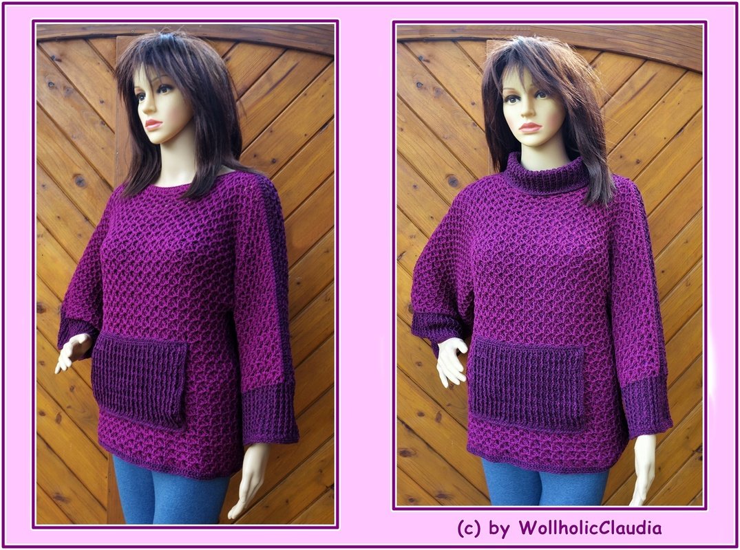 Pullover "Wohlbefinden" ist genau das Richtige für die kommenden kalten Tage. Mit oder ohne Kragen, Armweite, Bündchenbreite, Länge, alles kann angepasst werden, so dass es dein individueller Wohlfühlpulli wird. Ein tolles Muster für Damen, Herren oder auch für Kinder.