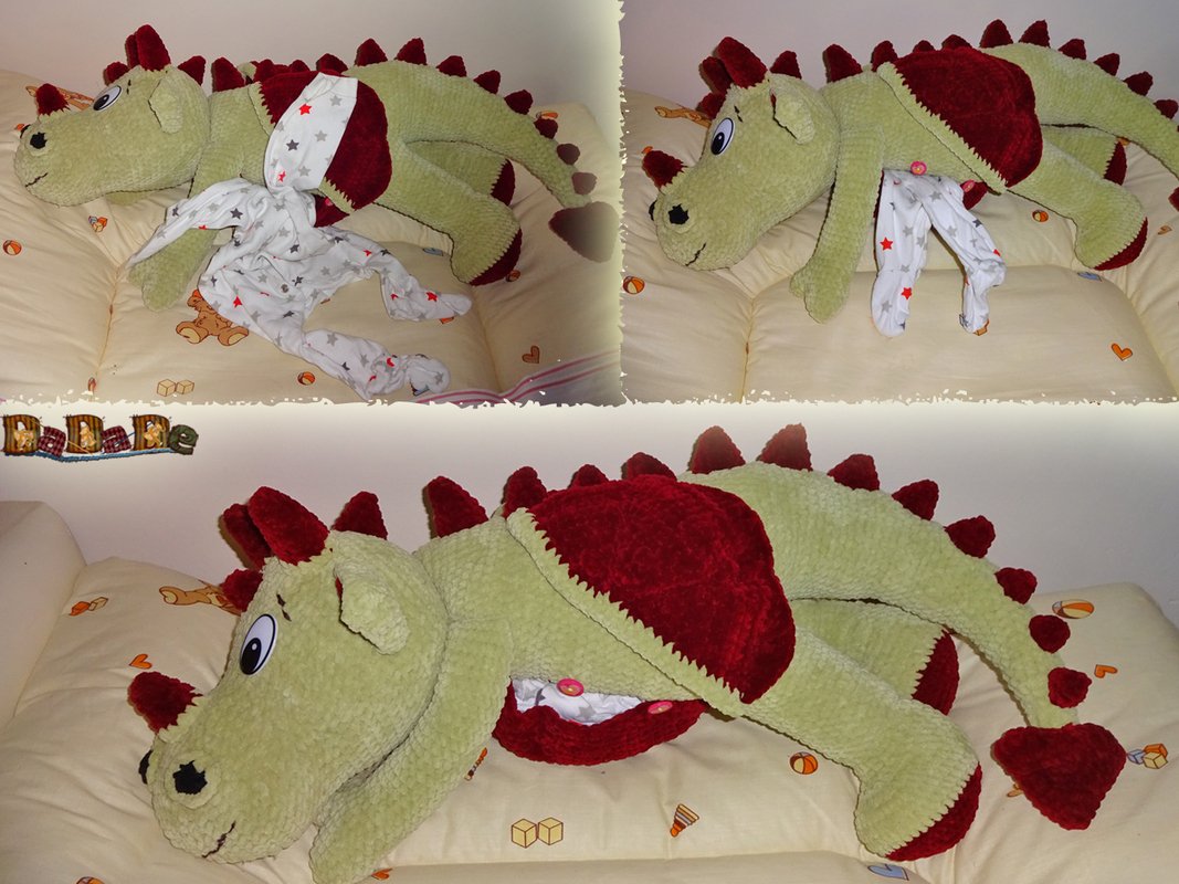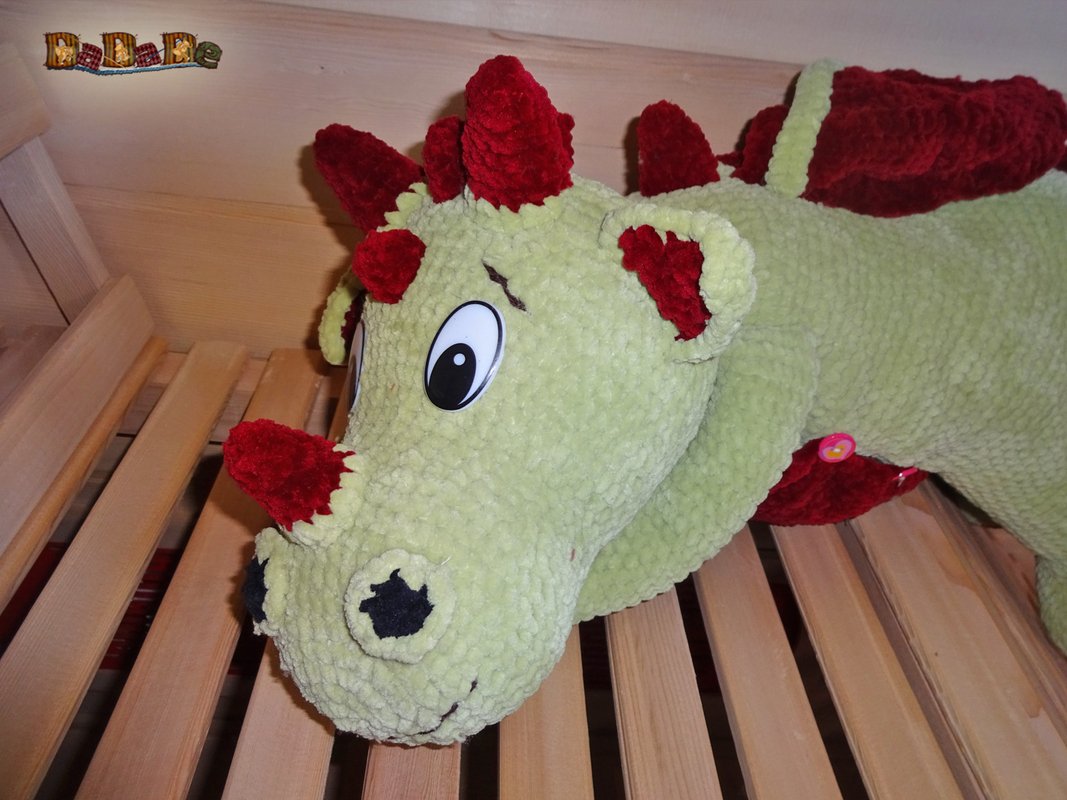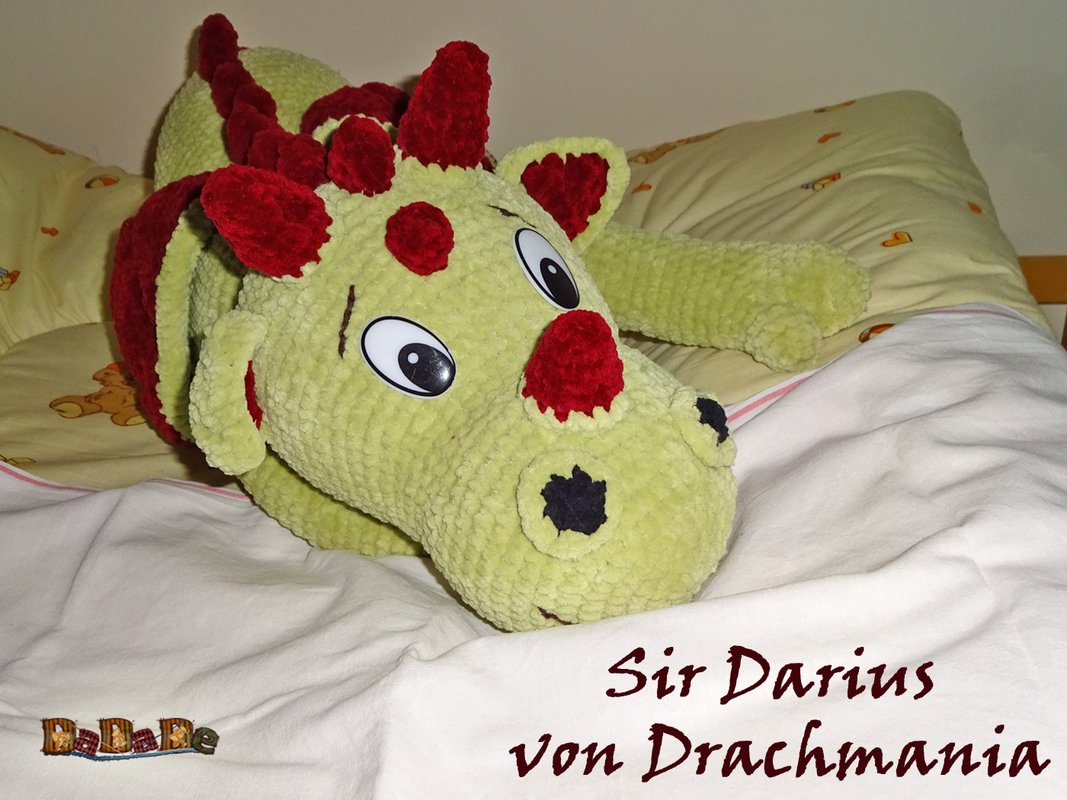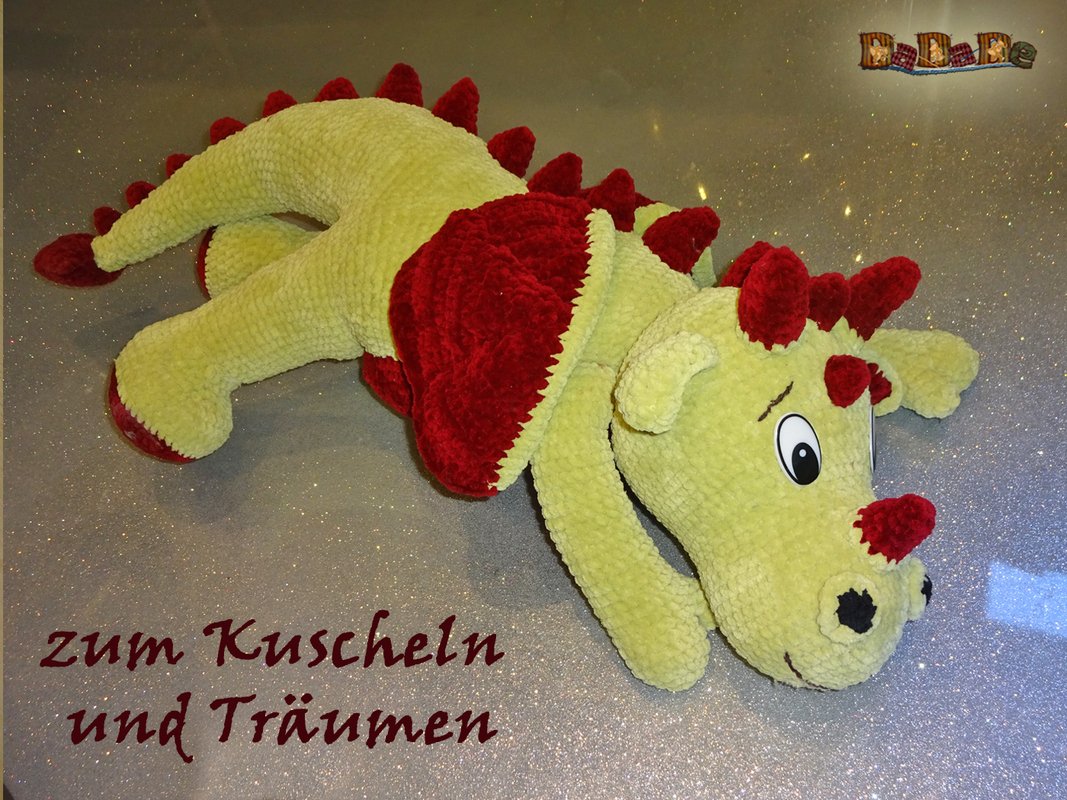 Sie kaufen hier die Anleitung für diesen kuschelweichen Drache Darius von Drachmania,