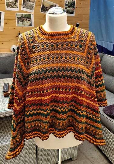 Häkle Dir einen kuschlig warmen Poncho in herbstlichen Farben.