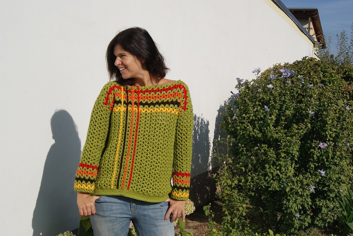 Cooler, lässiger und kuschelig bequemer Häkelpulli, der in angesagtem Oversize-Look perfekt zum Drüberziehen ist - egal ob über Top oder Langarmshirt! Flott gehäkelt kann man sich bald darauf freuen, ihn auszuführen!