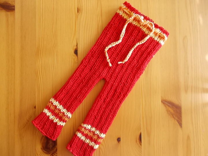 Die Hose ist ganz einfach von oben nach unten in einem Stück gestrickt, zuerst auf einer 40er Rundnadel (Stärke 3), dann auf dem CraSyTrio (oder alternativ Nadelspiel).