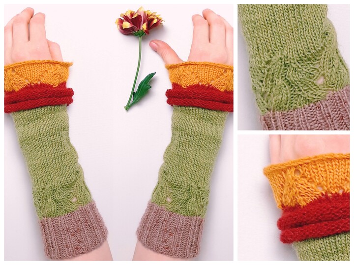 "Flower Power" für den Herbst und Winter versprechen diese Armstulpen in Blütenform. Sie sehen bestimmt auch einfarbig klasse aus. Wir stricken sie in Runden von unten nach oben. Die Stulpen haben 2 verschiedene Ajouremuster und die Blütenblätter bilden zwei Kringel am Rand. Zu den Mustern gibt es pro Gr. eine Strickschrift. Die Anleitung habe ich Maschenweise geschrieben. Ein Video zum elastischen Maschenanschlag, Maschen zusammenstricken und elastisches Abketten, ergänzen die Anleitung. Bei Fragen stehe ich immer zeitnah zur Verfügung.