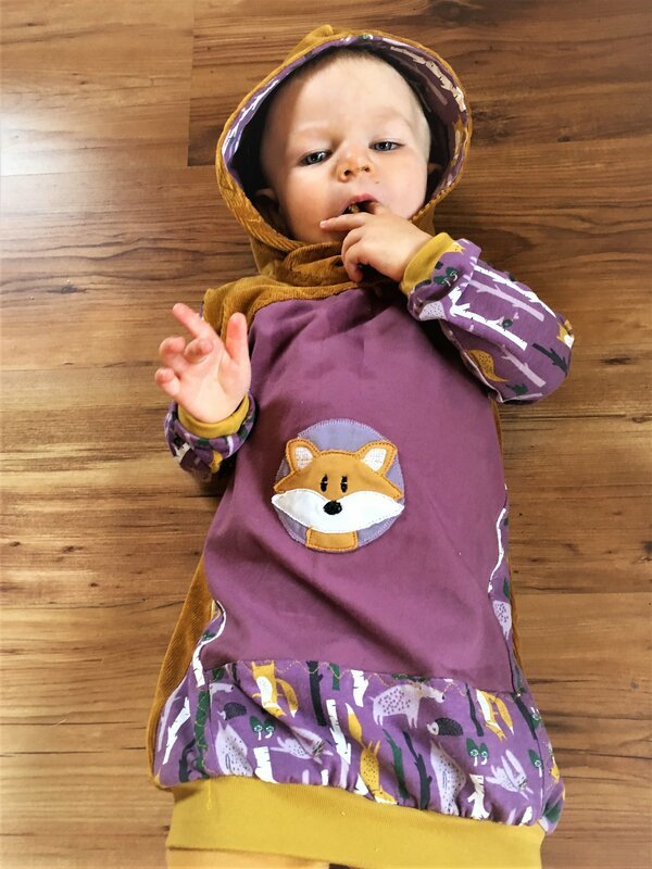 Gr. 86 – 164 umfasst der Schnitt in Einzelgrößen, der garantiert auch von Nähanfängern problemlos nachgenäht werden kann. Die Vorgehensweise ist jeweils ausführlich bebildert beschrieben – die Anleitung wird ergänzt durch Tutorials zum Bündchen-Annähen sowie zum Säumen.