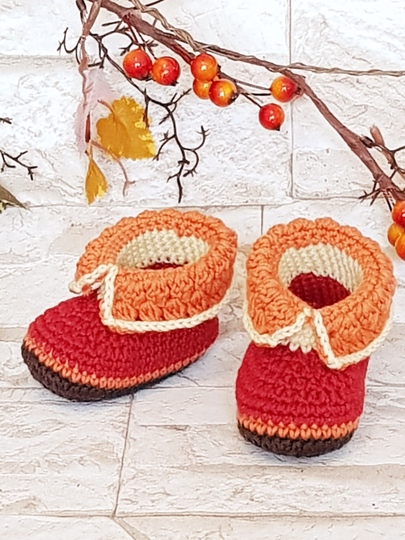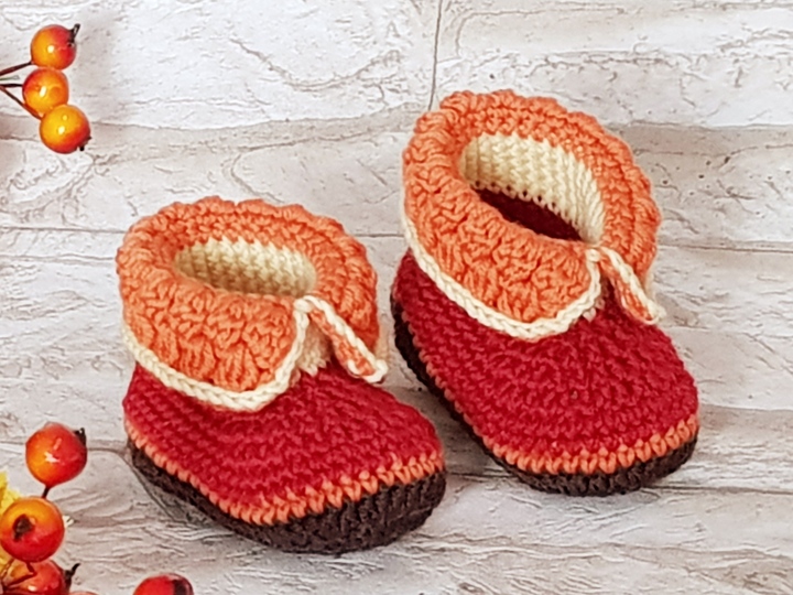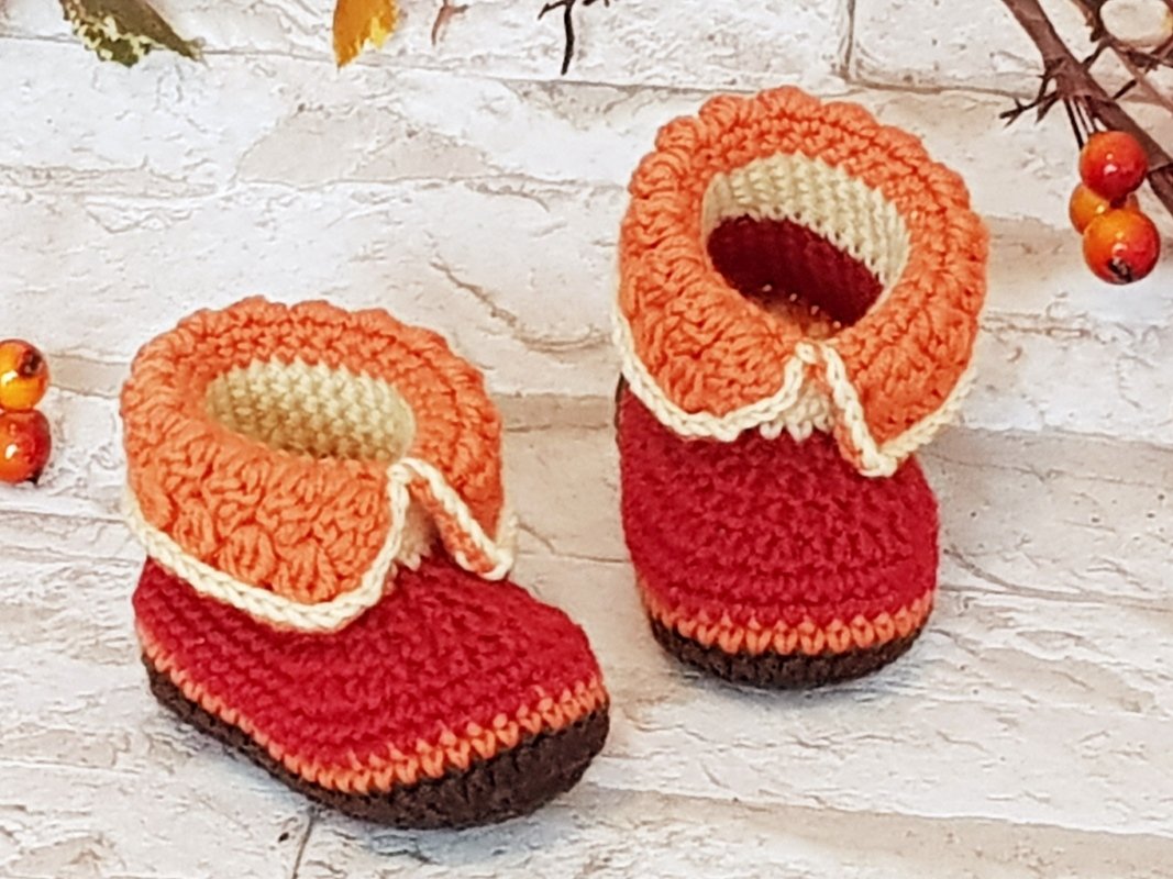 für etwas geübtere HäklerInnen geeignet - die Anleitung ist ausführlich beschrieben und enthält zahlreiche Abbildungen und eine unterstützende Häkelschrift für die Sohle und das Muster am Kuschelrand