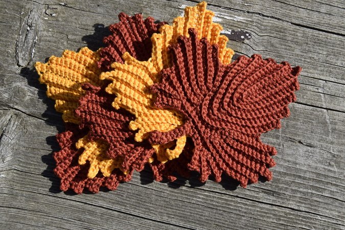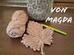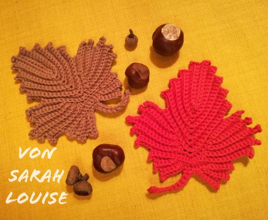Häkelst du das Blatt mit dickerer Wolle zum Beispiel wie myboshi No.1, Boston oder Super Merino Big Mix dann hast du die perfekte Größe für einen herbstlichen Topflappen. Das Blatt wird ca. 27-28cm groß.