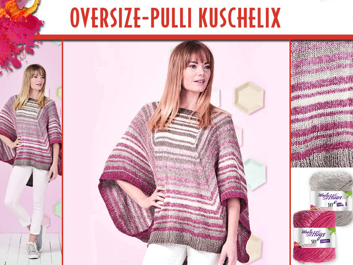 Ein so schöner Überziehpulli sieht man selten. Er ist aus der fluffig weichen Woolly Hugs Sky gestickt. Also aus luftiger Ägyptischer Baumwolle und darum besonders edel.
