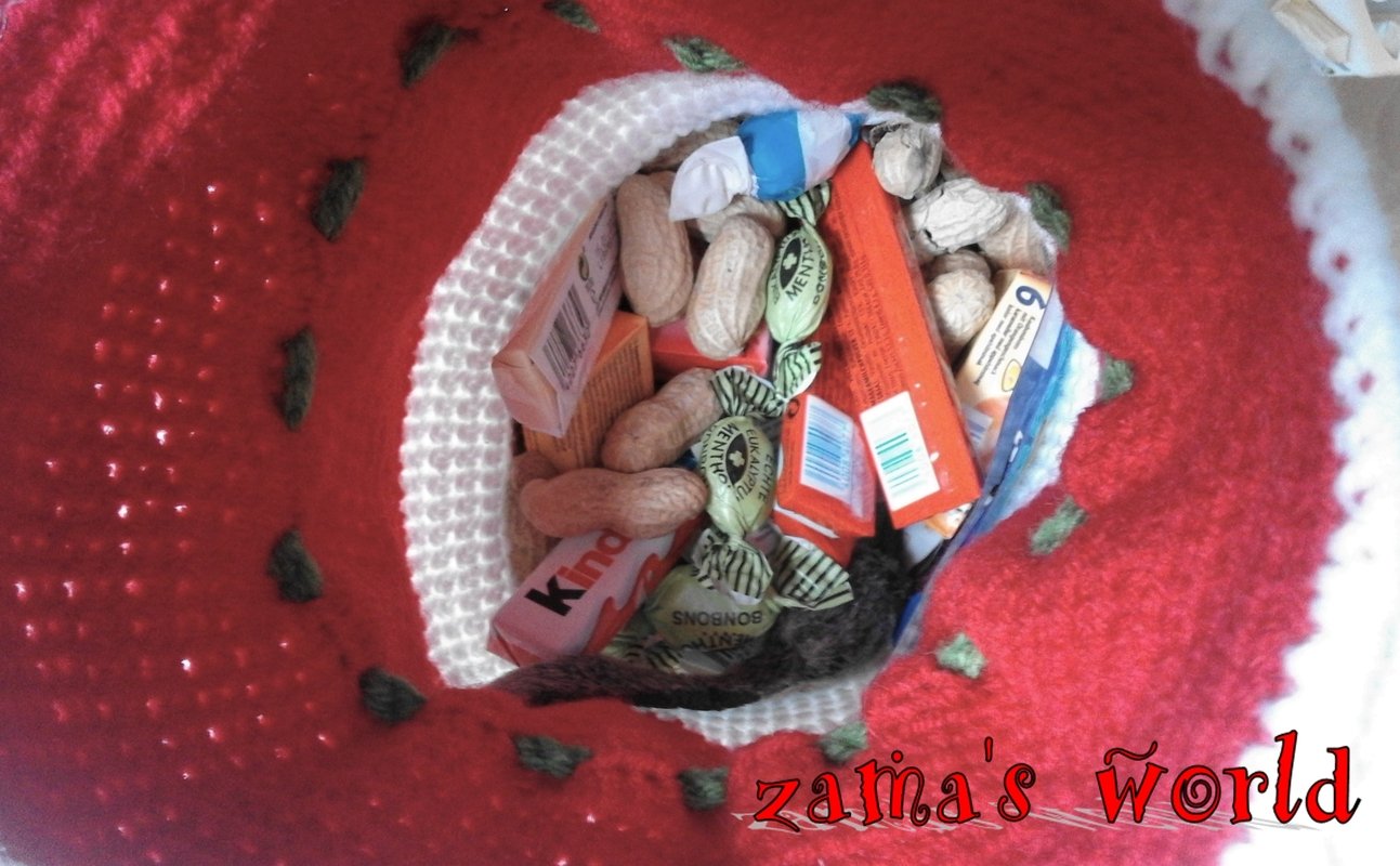 In meinem Santa-Sack haben ganze 2 kg Schokoriegel, Bonbons und Nüsse Platz!