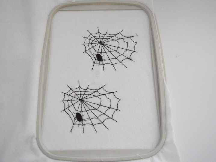 Es sind die Motive Gespenst, Spinnennetz, Kürbis enthalten, jeweils einzeln oder doppelt abgespeichert zum schnelleren Sticken. Zum Egänzen gibt es noch kleine Pilze und kleine Kürbisse, jeweils drei Stück für den 10x0cm Rahmen.