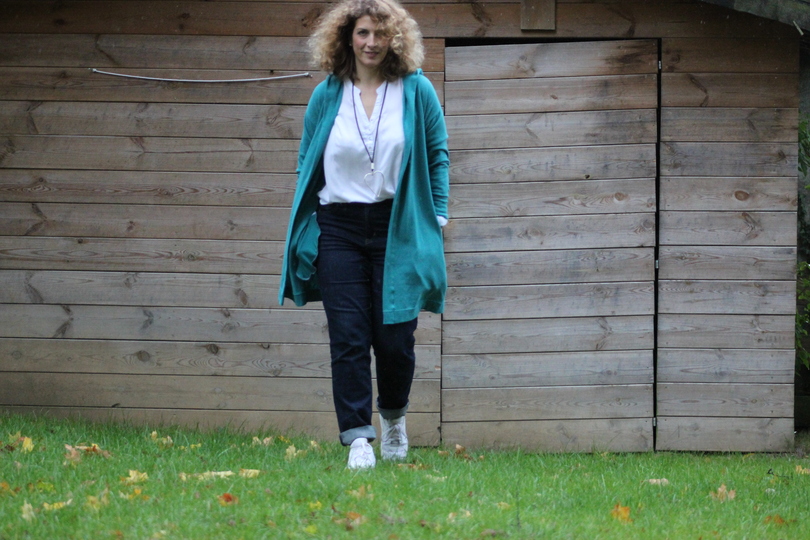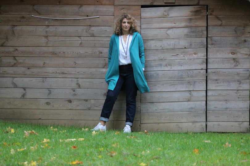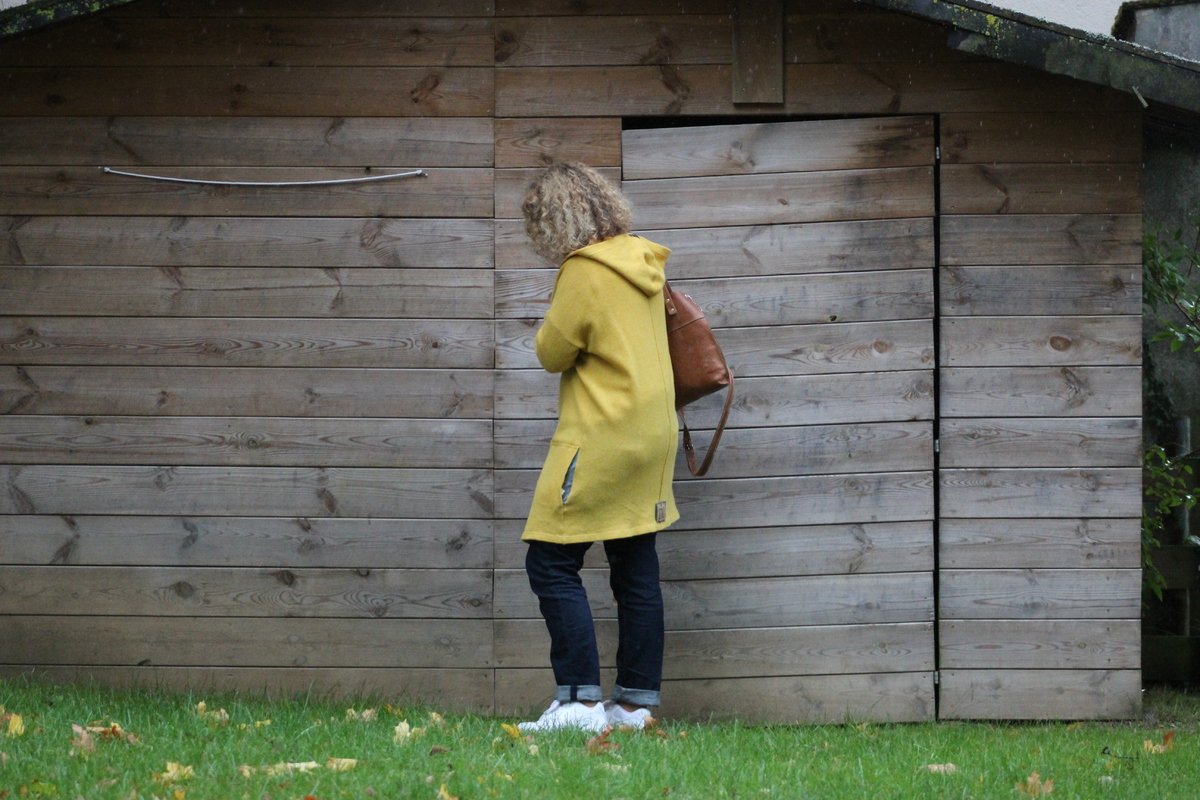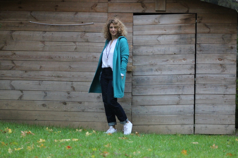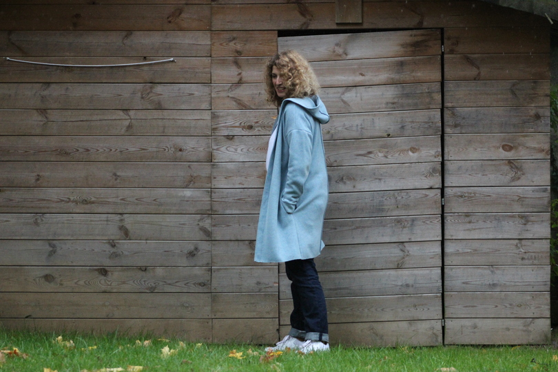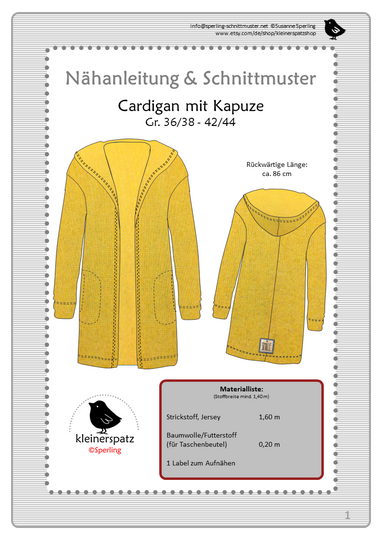 Mit dieser bebilderten und einfachen Nähanleitung könnt ihr euch aus jedem Strickstoff, Fleece oder Sweat einen tollen Cardigan mit angesetzter Kapuze nähen. Er trägt sich super bequem und wirkt durch die beiden seitlichen Taschen und eine rückwärtige Naht sportlich und lässig. Die Länge (ca. 88cm) reicht bis fast zum Knie und kann ganz beliebig noch gekürzt oder auch verlängert werden. Wenn ihr die Taschen aus einem Kontraststoff näht, setzt sich das schön ab ohne einen zu starken Kontrast zu bilden. Als Blickfang könnt ihr auf dem Rückteil oder auch am Saum ein individuelles Label aufsetzen.