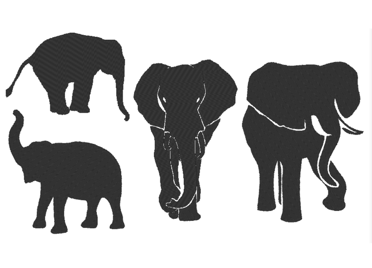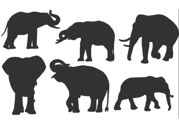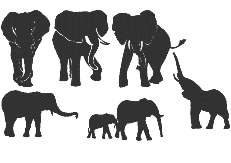 Die weißen Linien auf manchen Elefanten werden nicht gestickt, das sind Aussparungen an denen der Stoff sichtbar bleibt.