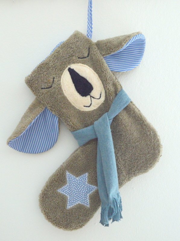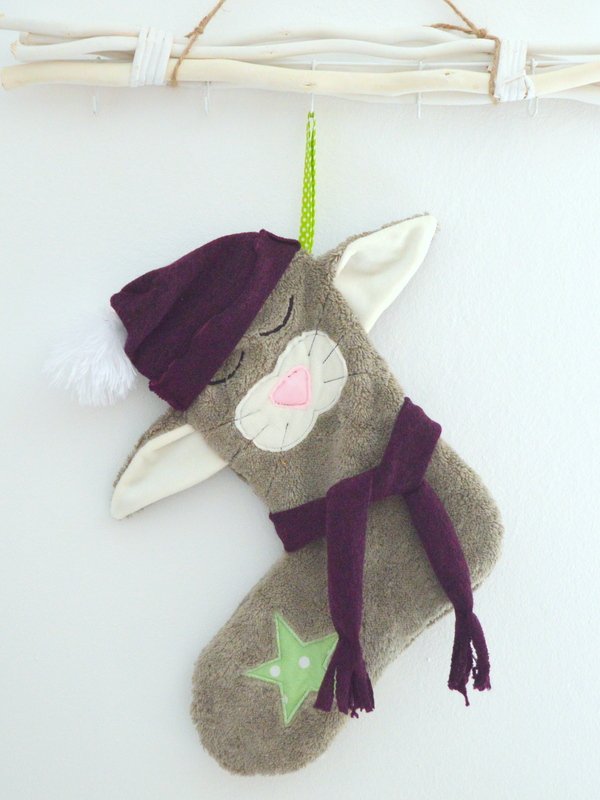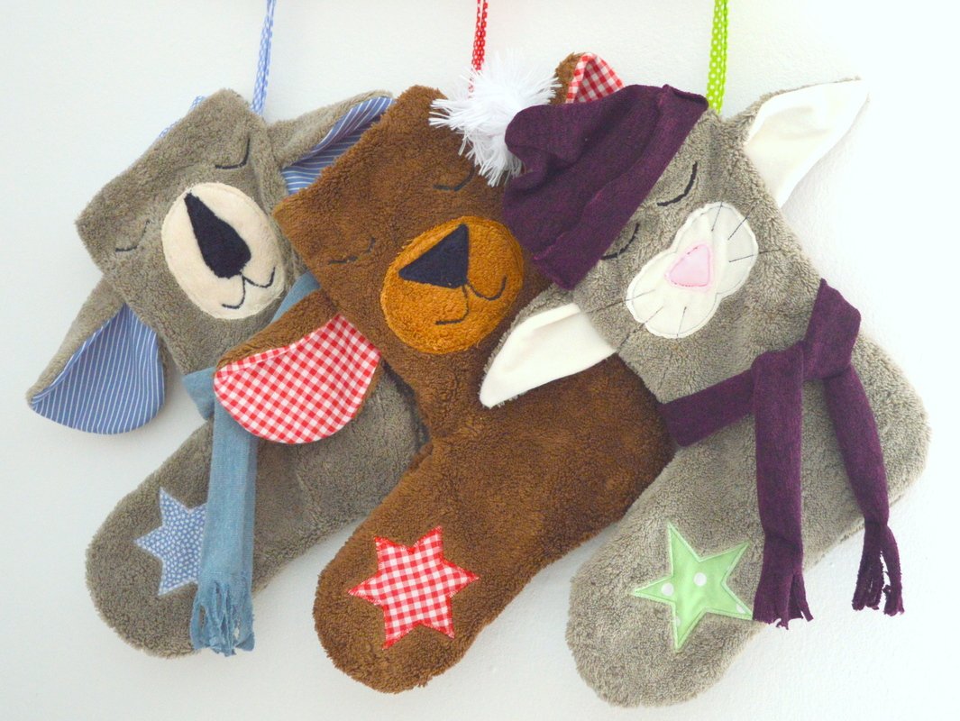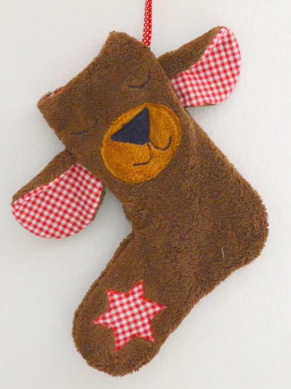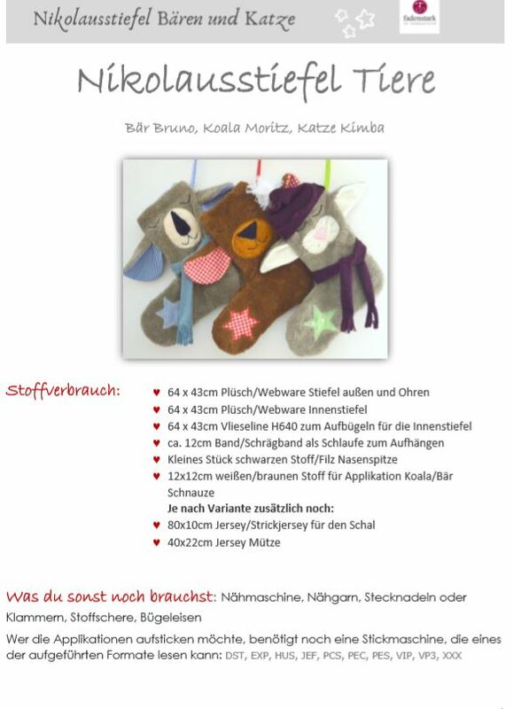 Nähanleitung Nikolausstiefel als Bär oder Katze mit Schnittmuster, Applikation und inkl. Stickdatei.