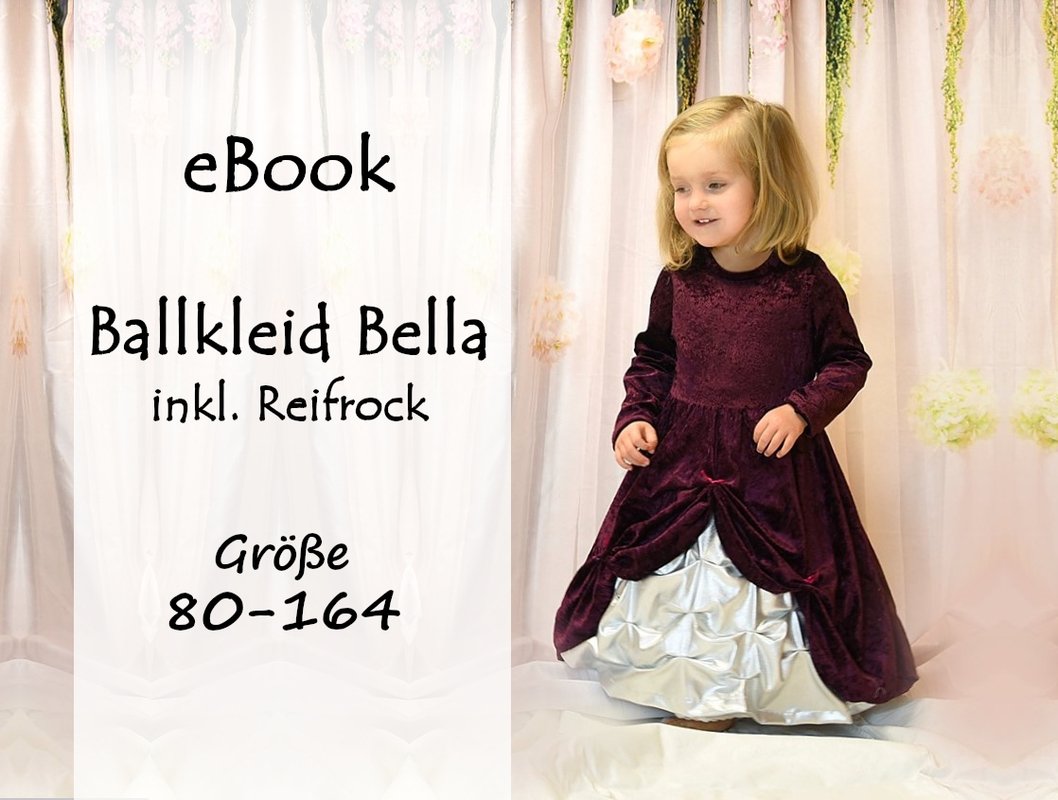 Das Ballkleid Bella ist ein bezauberndes Kleid für große und kleine Prinzessinnen. Es wird aus dehnbaren Stoffen wie zB Jerey, Folienjersey, Stretchsamt, Stretchtüll o.ä. genäht. Der geraffte Unterrock und der märchenhafte Überrock bringen garantiert alle Mädchen-Augen zum Strahlen!