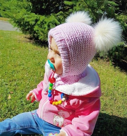 Mit Hilfe der Bänder kann man regulieren, wie eng die Mütze am Gesicht anliegen soll, und die zwei süßen Kunstfellbommel machen sie zum Hingucker schlicht hin.