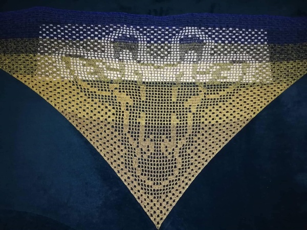 Die Anleitung ist auf 4 Seiten in teilweise Schrift (Erklärung Filethäkeln), der Anfang des Tuches in Pc-Häkelschrift und Zählraster geschrieben.