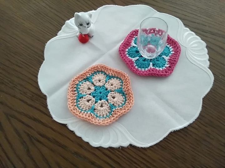 5 verschiedene Untersetzer in einer Anleitung. Für jede Sorte gibt es eine gesonderte Anleitung. Als Resteverwertung oder als Einstieg für Anfänger sicherlich gut geeignet.