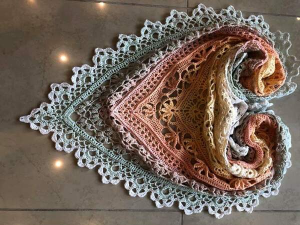 Das Romantic Wonder ist ein Dreieckshäkeltuch mit außergewöhnlichem Muster.