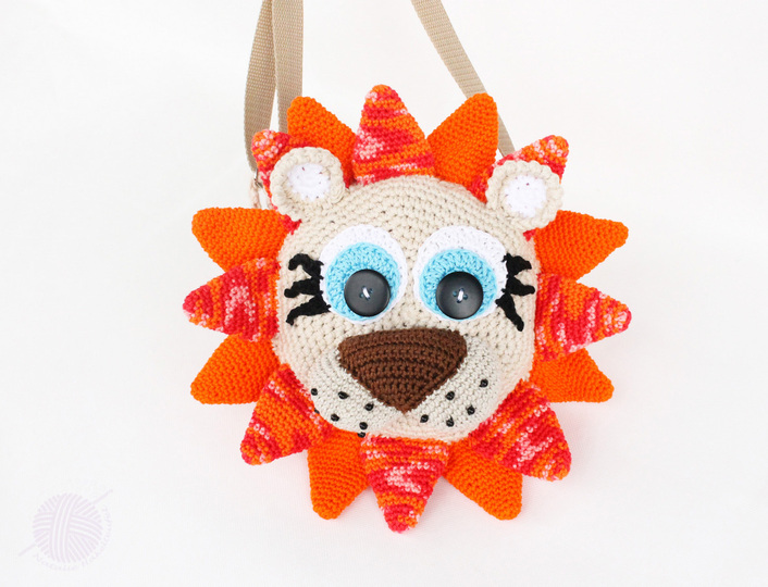 Diese Häkelanleitung besteht aus bebilderter Anleitung zum Häkeln von einer Kindertasche "Löwe". Die Tasche können Sie in drei unterschiedlichen Größen häkeln, 18-22 cm breit, so dass sie genug Platz für Kinderkram bietet. Die Tasche wird mit einem Reißverschluss verschlossen.