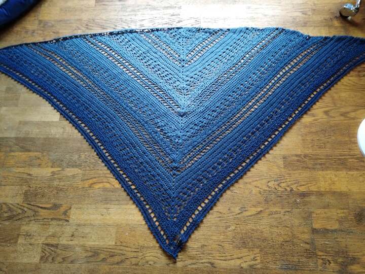 je nach Laufmeter vom Bobbel und Nadelstärke variert die Größe des Tuches. Bei mir als Bsp.: 180 cm x 100 cm ungespannt.