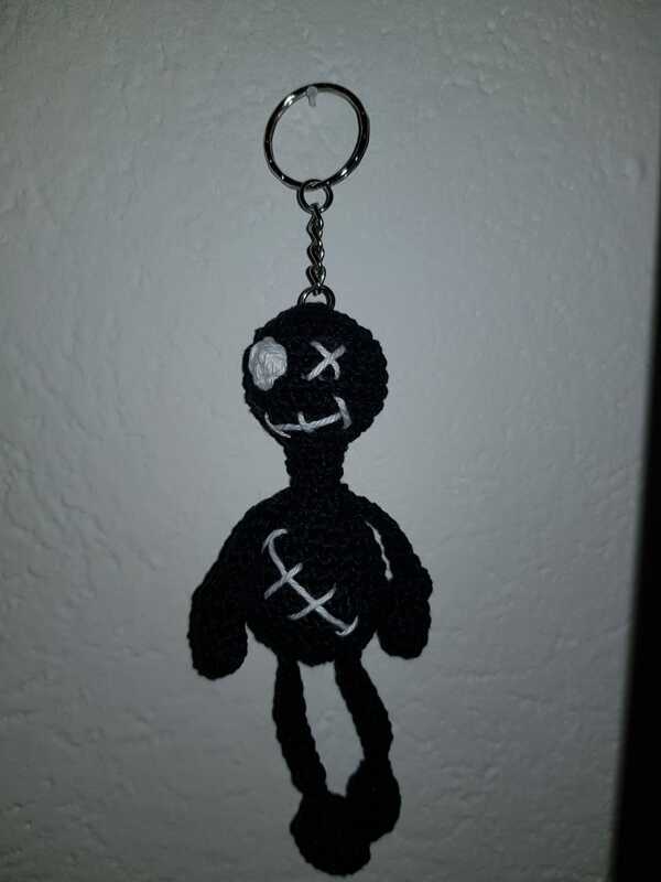 Der kleine Vodoo freut sich überall dabei sein zu dürfen. Als kleiner Schlüsselanhänger individuell gestaltbar.