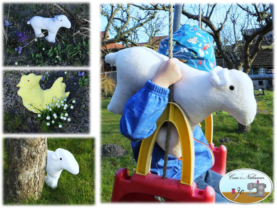 Alle Schnitte lassen sich wunderbar abwandeln. Das Osterei kann man z.B. hervorragend patchen, den Tieren Knopfaugen annähen, mit einer Stickmaschine Details aufsticken … lass deiner Fantasie freien Lauf.