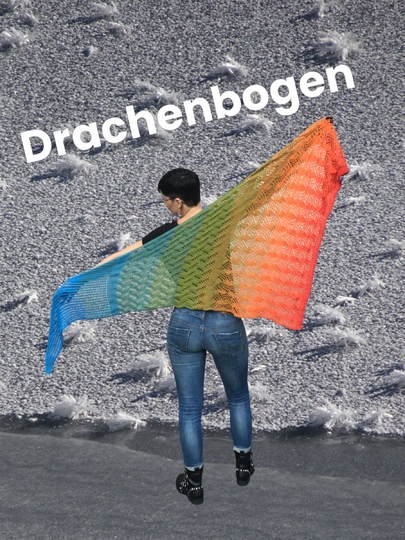 Der Drachenbogen ist mit einem 4fädigen 1000m Bobbel von Wolle von Drachenstein gestrickt. Es ist ein Bobbel aus 70% Leinen und 30% Baumwolle gestrickt und diese Mischung ist wahnsinnig weich und angenehm zu tragen.
