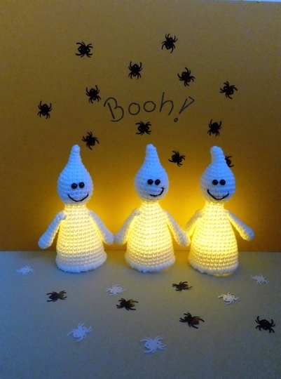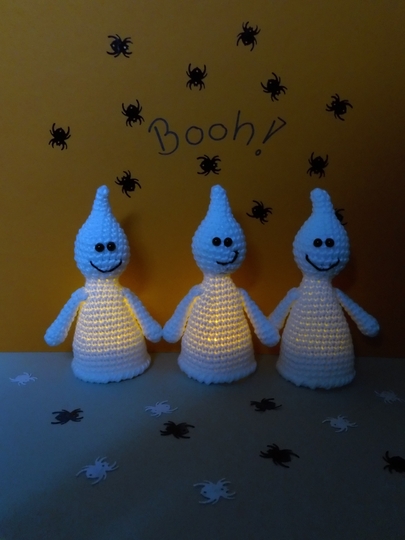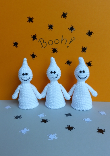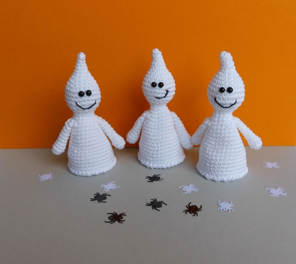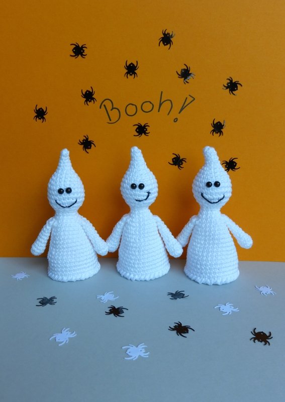 Angeboten wird hier eine ausführliche und gut bebilderte Häkelanleitung für die Geister, nicht das fertige Produkt. Die Anleitung umfasst 6 Seiten.