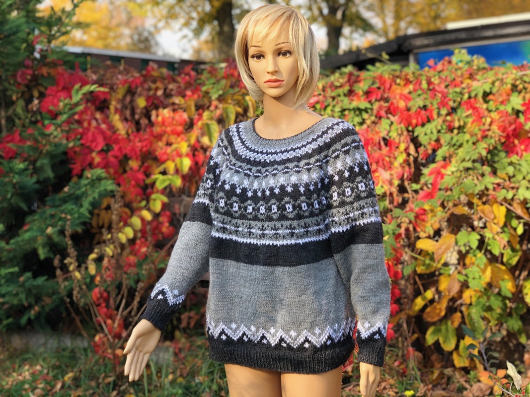 Dieser schmucke Pullover wird von oben nach unten gestrickt. Die Rundpasse mit dem Fair-Isle-Muster macht deinen neuen Pullover zum gemütlichen Allrounder.