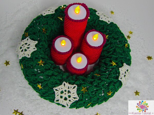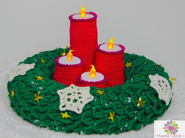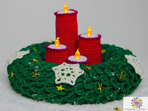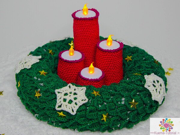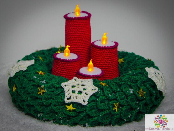 Advent, Advent eine LED brennt. Mit diesem besonderen Tischkranz, schmückst Du jeden Tisch. Nicht nur schön anzusehen, sondern auch jedes Jahr wieder verwendbar und nichts kann brennen. Mit meiner Anleitung kannst Du diesen Kranz, schnell, einfach und individuell nachhäkeln. Viel Spaß wünscht KümaTutorials.