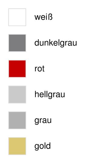 weiß 22Kn, rot & dunkelgrau je 3Kn, grau, hellgrau & gold je 1Kn