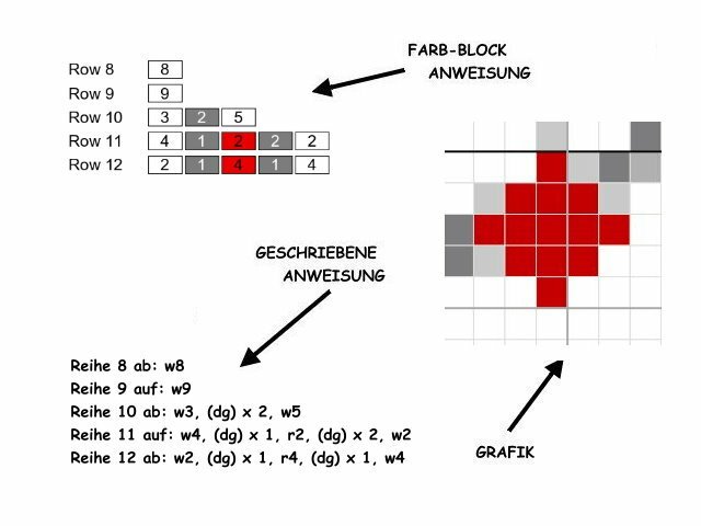 -farbige Zahlen-Blöcke für jede Zeile für C2C-Technik