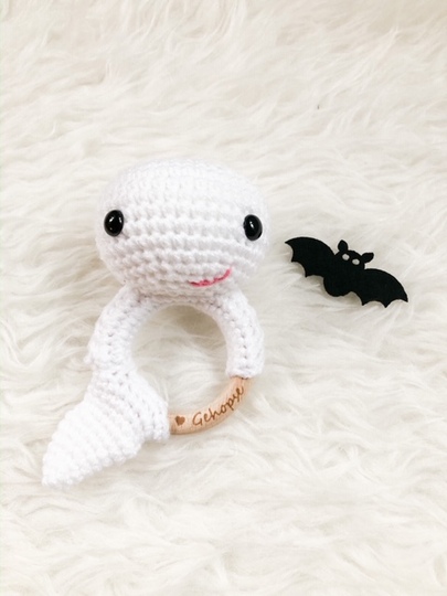Mit dieser Häkelanleitung kannst du deine eigene süße Gespenst-Rassel häkeln.