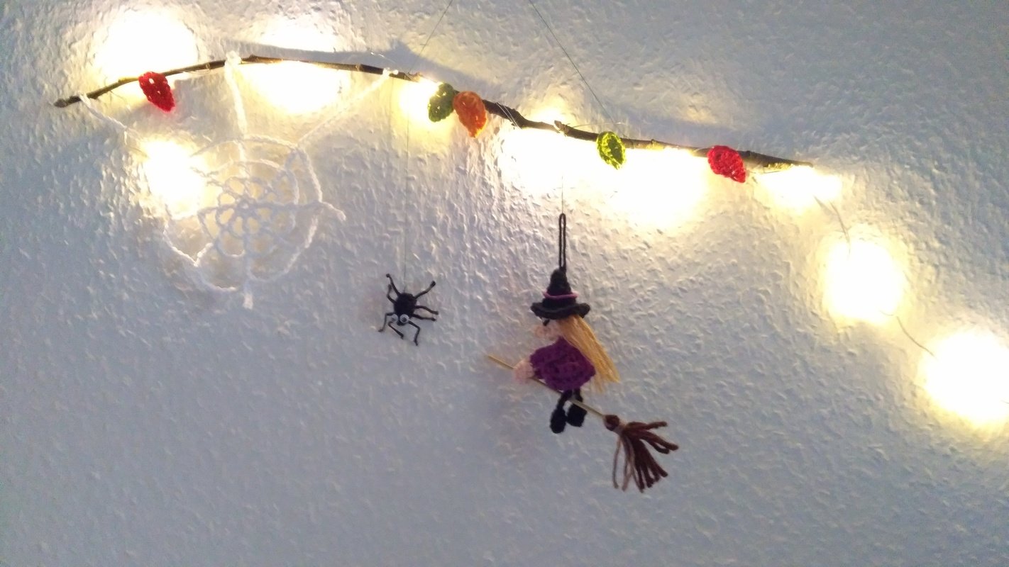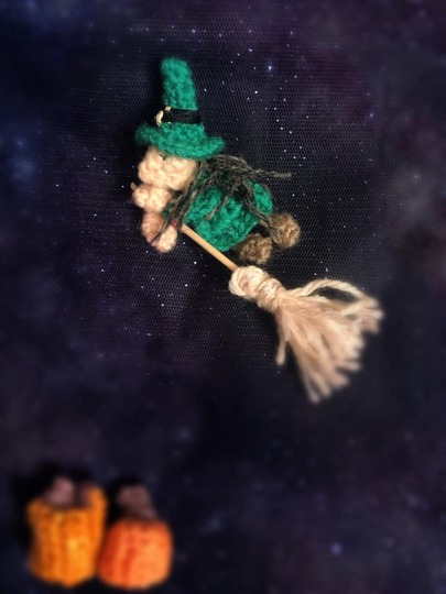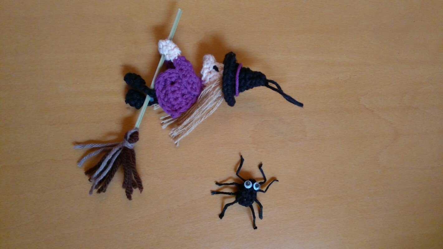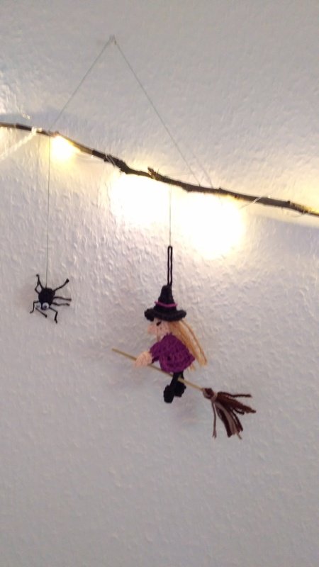 Die kleine Hexe Bria mit ihrer Freundin Spidy ist eine schöne Dekoration für Halloween oder Walpurgisnacht.