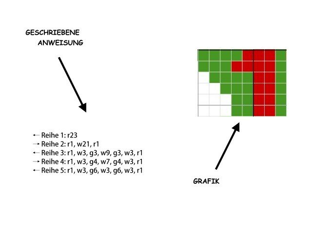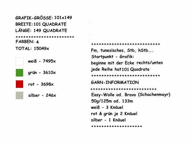 -geschriebene Instruktionen - Reihe für Reihe (für feste Maschen) im Ganzen & in einzelen Elementen (1-24)Grundkenntnisse wie Luftmasche & feste Maschen sind erforderlich!