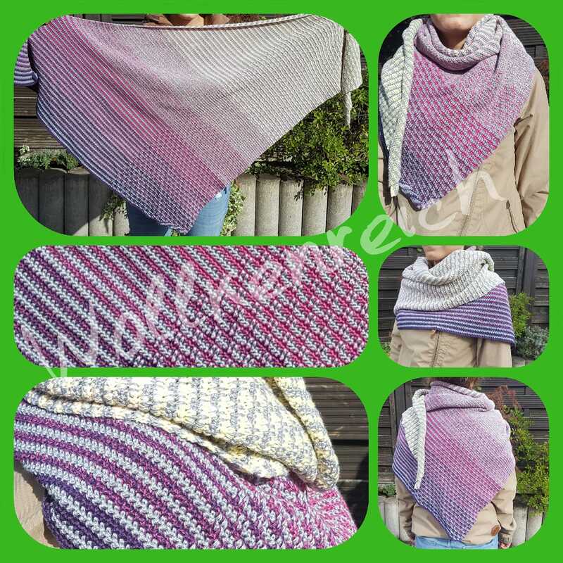 Die Größe wählt jeder für sich selbst und ist abhängig von der Materialmenge. Zum Verlgeich: für das Tuch auf dem Foto wurde mit 2x 750m 3fädig gearbeitet.