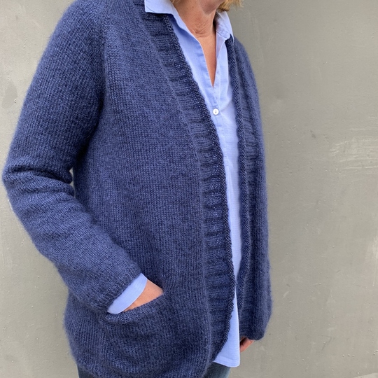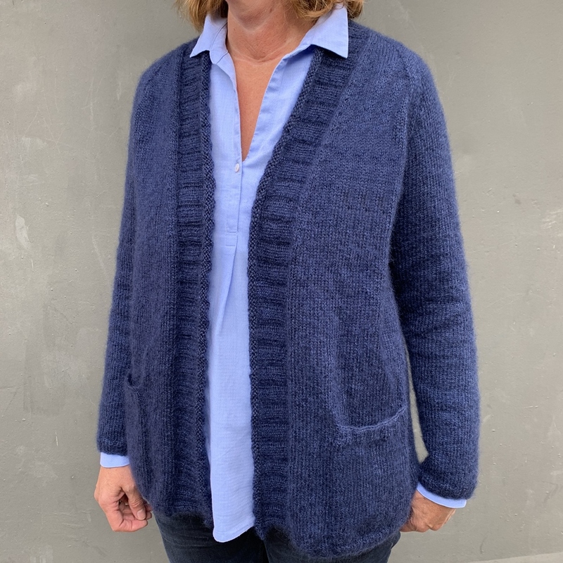 Die Jacke wird mit rechten und linken Maschen von unten nach oben mit Raglanabnahmen gestrickt.