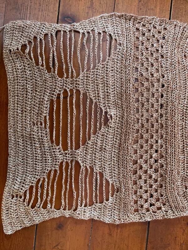 Der Schal ist ca 46cm breit. Die Höhe kann variert werden.