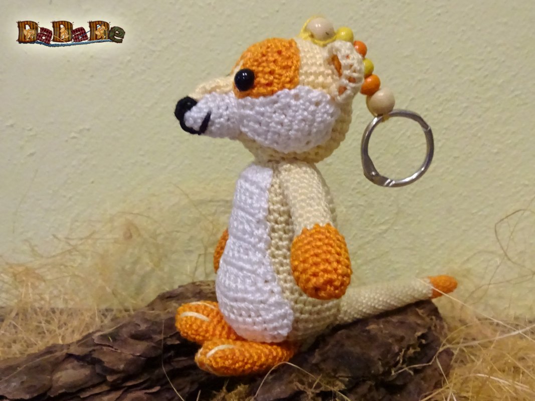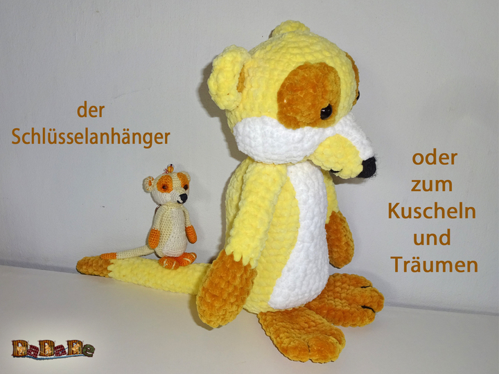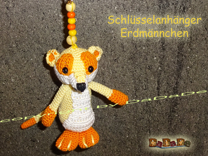 Mit Baumwolle der Nadelstärke 2 wird der Schlüsselanhänger Erdmännchen ungefähr;