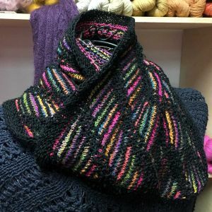 Der Loop *Imagina* hat ein grafisches Muster und kann auch als Schalkragen gestrickt werden.